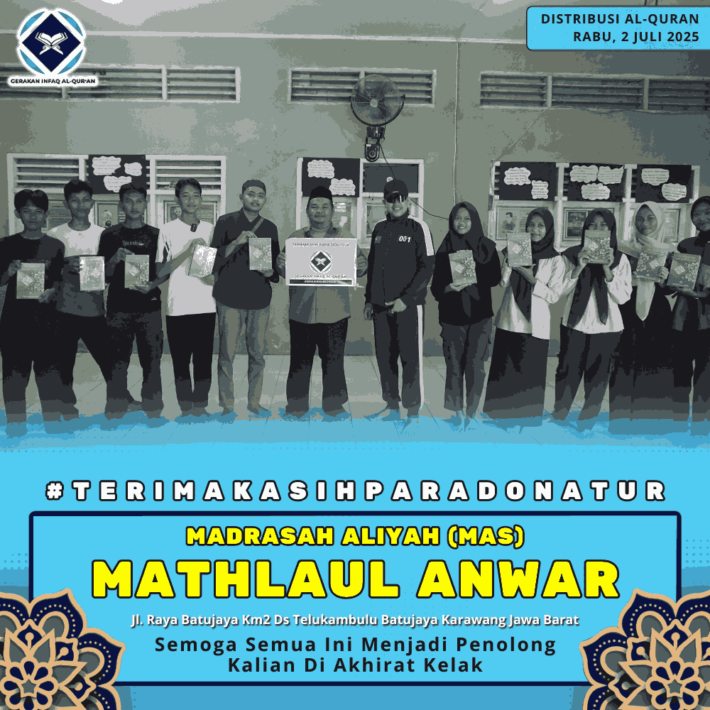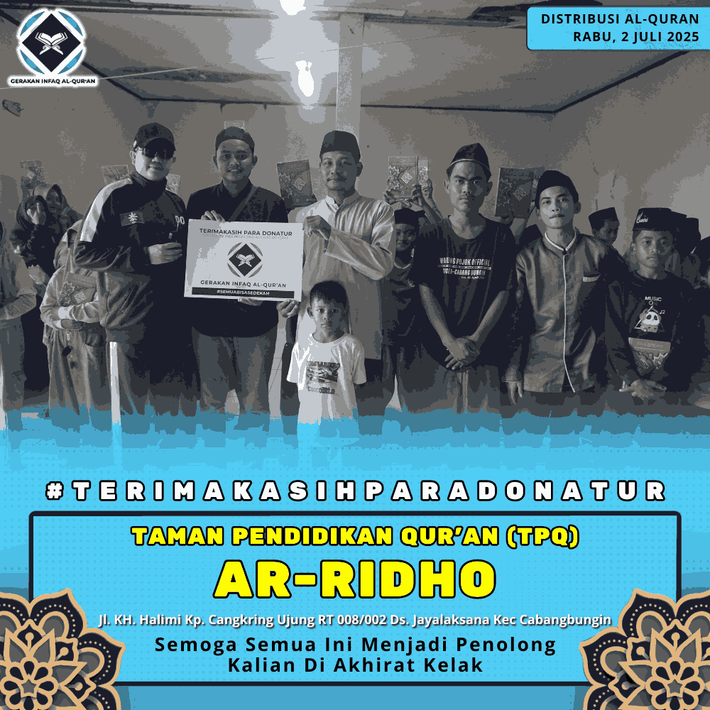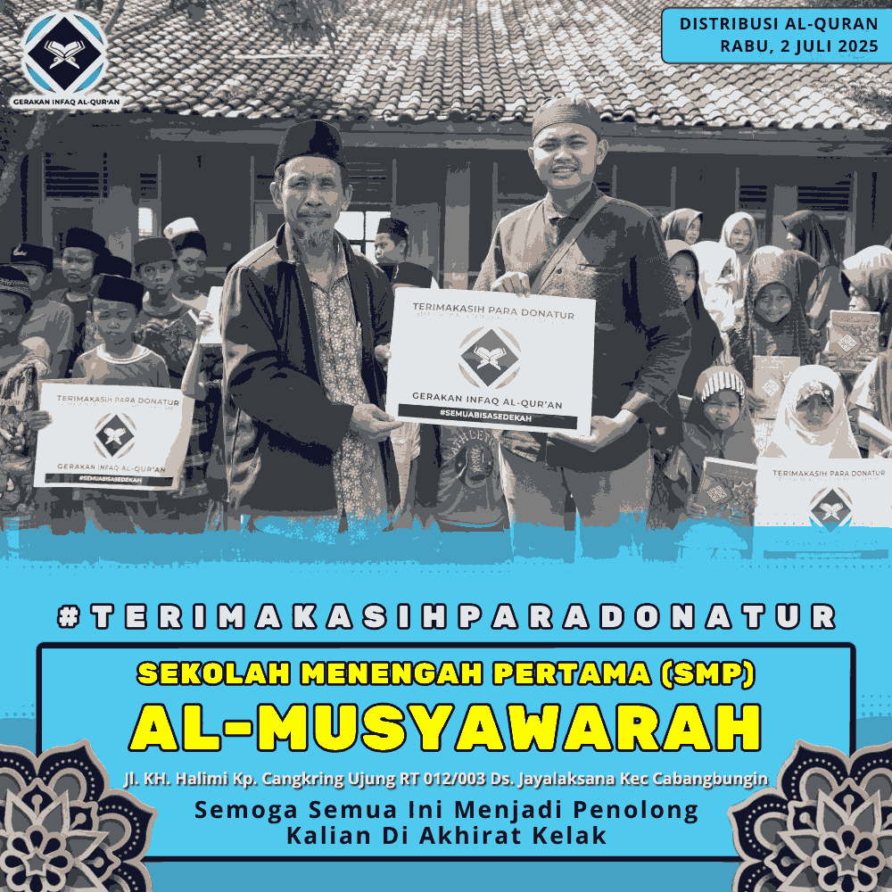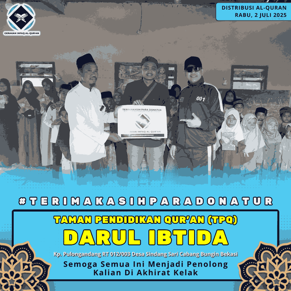 Sudah lebih dari 10.000 Al-Qur’an yang telah di bagikan dan Ada dokumentasi untuk setiap Sedekah yang anda tunaikan di Gerakan Infaq Al-Qur’an.